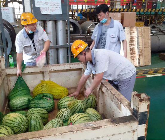 各部门根据生产实际情况以及防暑降温具体要求,一是科学组织,合理调整作业时间,关注员工身体和精神状况,做好防暑降温应急准备;二是保证供应,重点防护,保证一线作业人员需求,每天为员工提供充足的清凉饮料;三是人文关怀,细致入微,各部门将防暑降温工作落实到实处,为员工购买西瓜、各类饮品、毛巾、沐浴露等防暑清凉物资,慰问在高温下坚守的员工,为他们送去了一丝丝清凉、一份份温情……