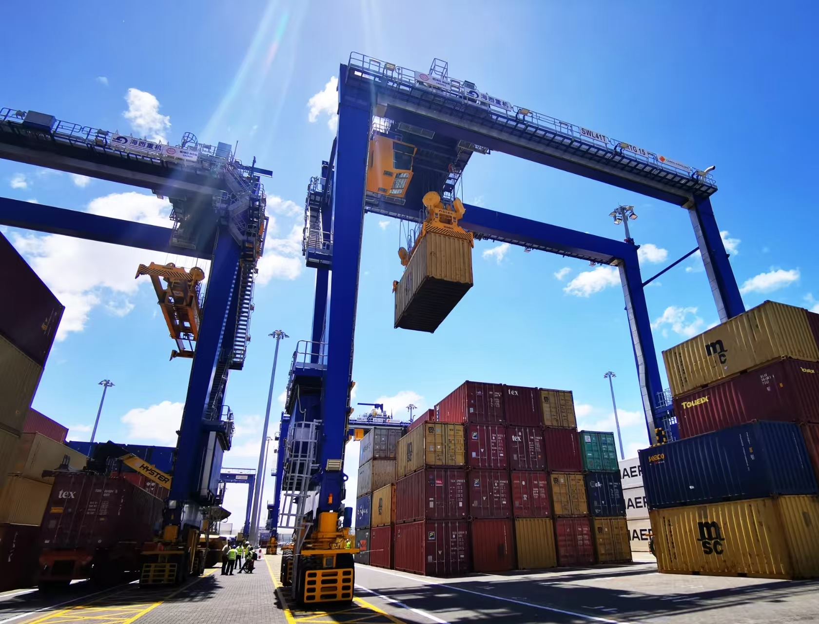 近日中船集团旗下武汉船机海西重机续签连云港港批量全自动轮胎吊项目,这是双方继连云港港自动化轨道吊项目的又一强力合作,标志着双方迈入了全新合作交流阶段。