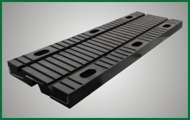 橡胶伸缩装置利用橡胶材料剪切模量低的原理设计制作而成的,在剪切型橡胶伸缩体设有上下凹槽,橡胶体内埋设承重钢板和锚固钢板,并预留螺栓孔,通过螺栓与梁端连成整体跨越梁端间隙。依靠上下凹槽之间的橡胶体剪切变形来满足梁体结构的相对位移。具有伸缩量大、行车平稳等优点。该产品可用于公路桥梁结构中。